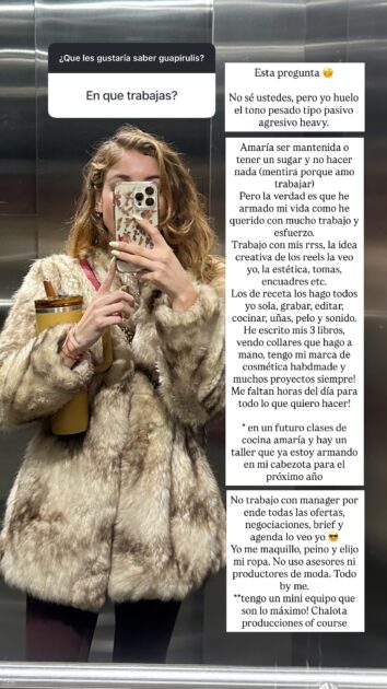 “He escrito mis 3 libros, vendo collares que hago a mano, tengo mi marca de cosmética handmade ¡y muchos proyectos siempre! Me faltan horas del día para todo lo que quiero hacer“, añadió la ganadora de MasterChef.