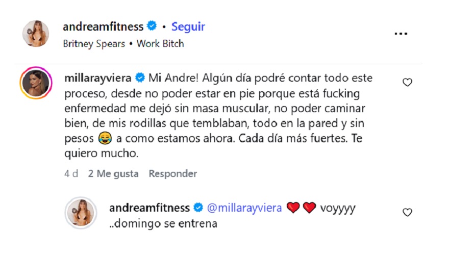Detrás de todo este proceso de “reactivación” para Millaray Viera está la entrenadora Andrea Madriaza, quien acompaña también a otras famosas como Euge Lemos, Yamila Reyna y Begoña Basauri en su camino fitness.