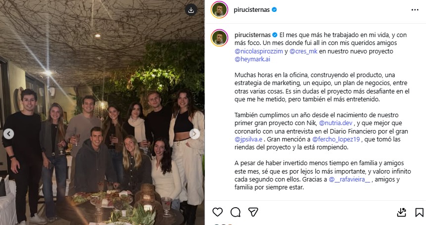 “El mes que más he trabajado en mi vida, y con más foco. Un mes donde fui all in con mis queridos amigos Nicolás y Crescente en nuestro nuevo proyecto HeyMark!“, partió señalando.