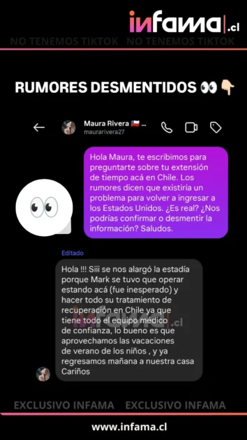Maura Rivera explicó larga estadía en Chile junto a Mark González