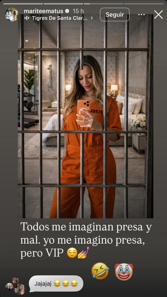 “Todos me imaginan presa y mal. Yo me imagino presa y regia, pero VIP”, escribió.