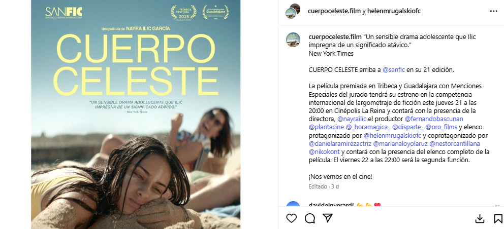De hecho, hace días se estrenó el filme en Sanfic21. “El siguiente paso es San Sebastián, donde la película competirá en Horizontes Latinos“, señalaron en redes sociales.