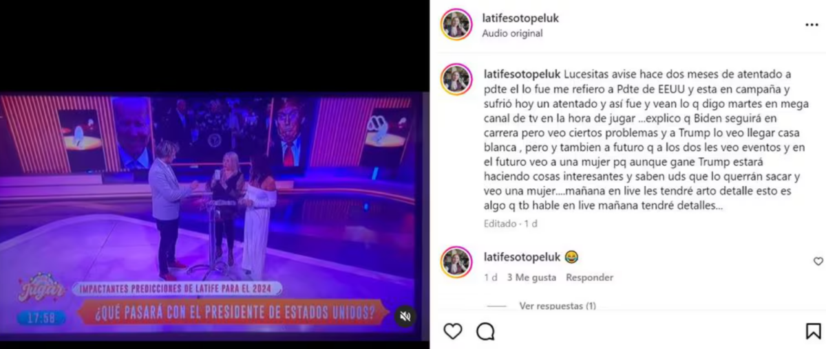 Latife Soto sorprendió a sus seguidores de Instagram al recordar un vaticinio que hizo en 2023 sobre un hecho que ocurrió el fin de semana.