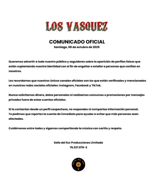 El comunicado de Los Vásquez por suplantación
