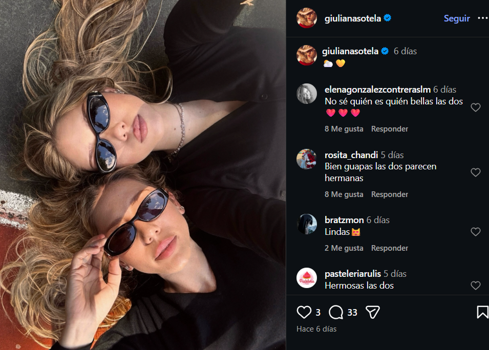 La más reciente publicación de Giuliana Sotela en Instagram generó sorpresa entre sus seguidores, luego de compartir una fotografía junto a su hija Constanza Ríos, donde ambas aparecen posando con lentes de sol y mirando a la cámara. La imagen llamó la atención por el gran parecido entre madre e hija, que para muchos lucen prácticamente idénticas.