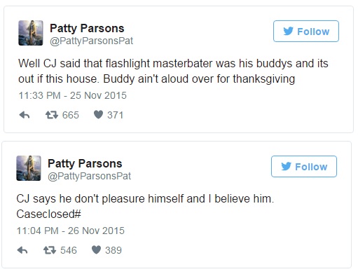 Finalmente, la mujer enfrentó a su hijo: “Bueno, CJ me dice que ese masturbador le pertenece a uno de sus amigos que está fuera de casa. Su amigo no tiene permitido venir a Acción de Gracias”, escribió.