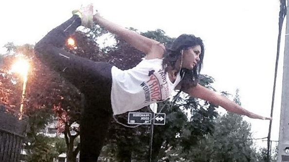 Además aseguró que al realizar dicha postura logra ejercitar “abdomen, brazos y estirar músculos de la pierna”. “Como me gusta bailar y he dejado de hacerlo un poco, he retomado el elongar la elasticidad, dos o tres veces a la semana, especialmente por el yoga, donde se necesita tener mucha elasticidad, control y firmeza para no bloquearse”, detalló.
