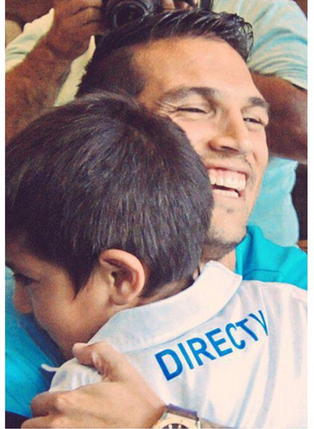 Hermosa foto!!! , este niño de 4 años perdió todo en el aluvión, fue rescatado por un bombero que aún se encuentra desaparecido, solo alcanzó a rescatar su polera y un osito de la Católica, que lindo que hoy pudo conocer al equipo y mañana podrá ir al partido“, fue el emotivo mensaje con el que acompañó la estática.