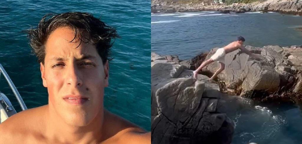 “Un poco del 2023”, escribió el hijo de Cecilia Bolocco, en donde el primer video lo muestra lanzándose un arriesgado piquero en el mar, pero muy cerca de unas rocas.