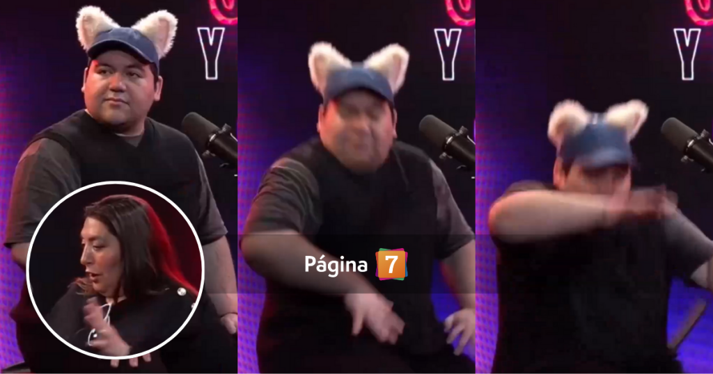 Una inesperada caída sufrió Danilo 21 mientras entrevistaba a la Pincoya en su podcast.