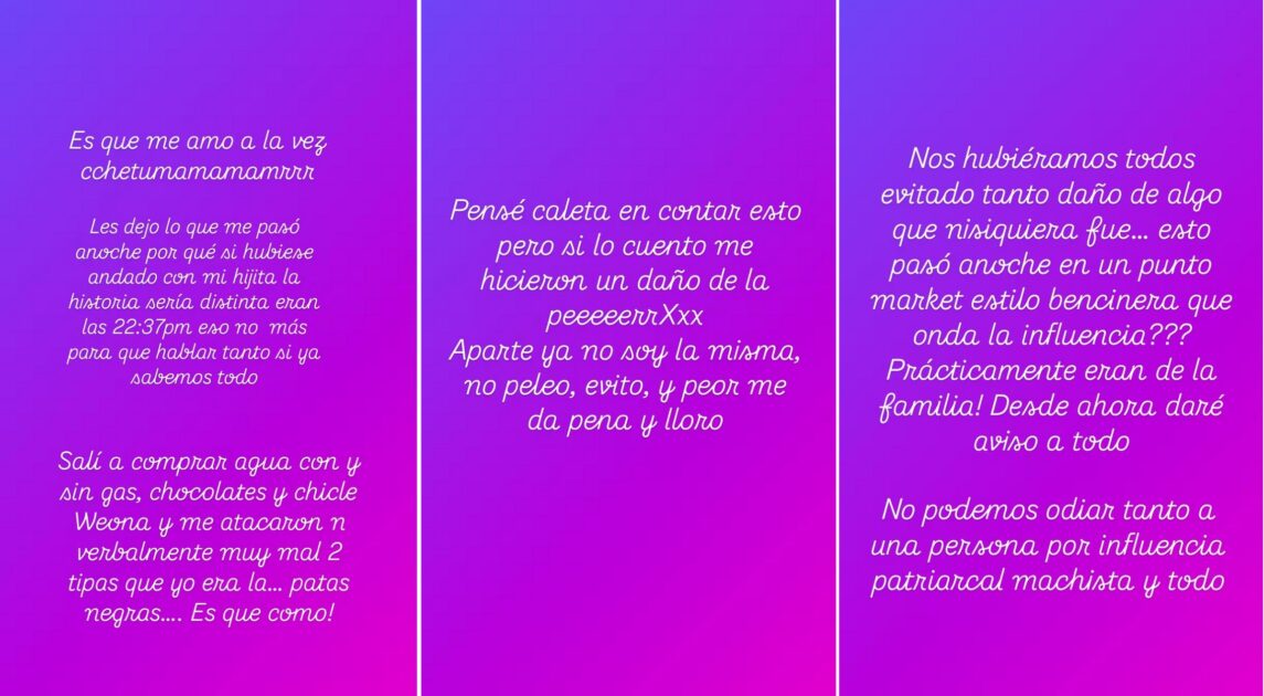 Karina Valenzuela detalló en sus historias de Instagram que el ataque ocurrió en un minimarket estilo bencinera.