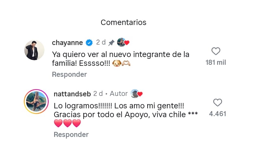 Sebastián no tardó en celebrar este verdadero triunfo: “¡Lo logramos! ¡Los amo, mi gente! Gracias por todo el apoyo. Viva Chile”, escribió en la misma caja de comentarios.