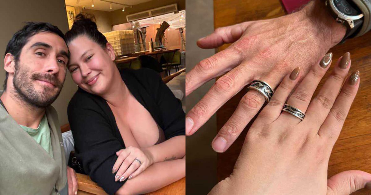 La imagen los mostró juntos, usando anillos iguales, de color plateado con grabado negro, uno en cada mano izquierda.