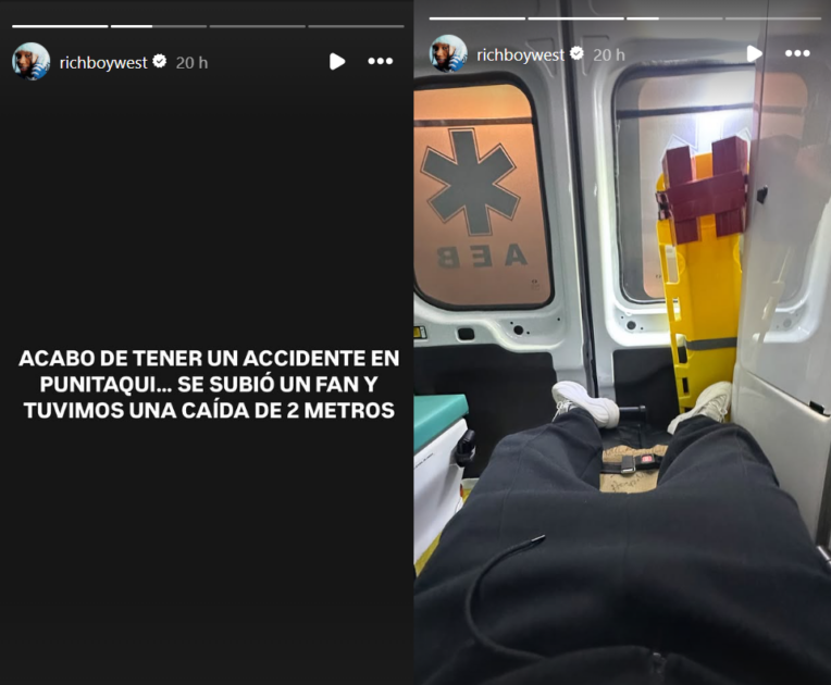 El cantante Polimá WestCoast vivió un momento insólito en su concierto en Coquimbo al ser abrazado por un fan que subió al escenario, resultando en una caída de dos metros. El incidente provocó que el artista fuera trasladado de urgencia para recibir atención médica, reportando posteriormente un esguince en su brazo izquierdo. Agradeció a sus seguidores por preocuparse y a la gente de Punitaqui por su pronta ayuda.