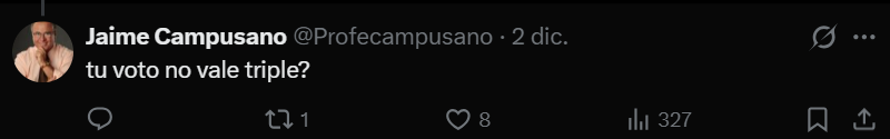 Otro ejemplo es su reacción a una adherente de Jara, quien subió a X un video apoyando a su candidata. Al parecer, el sobrepeso de la joven molestó profundamente a Jaime, quien se burló de ella escribiendo: “¿Tu voto no vale el triple?”.