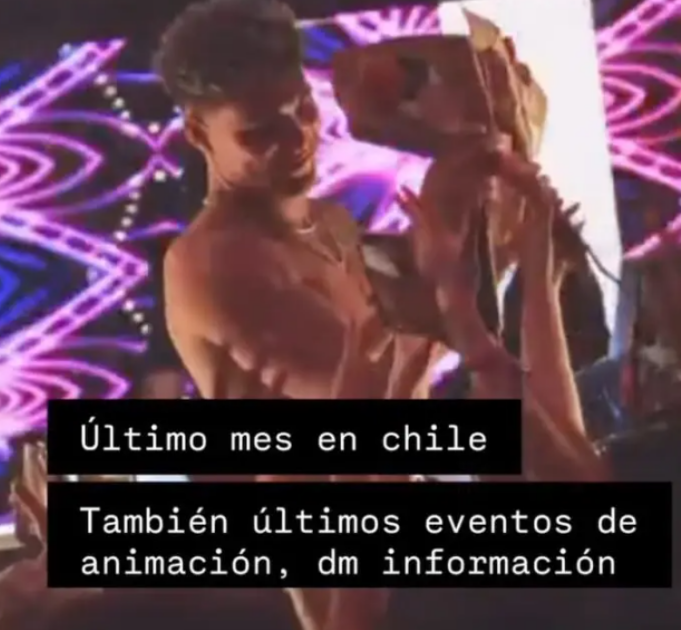 “Último mes en Chile”, escribió, añadiendo: “También últimos eventos de animación, DM información”.