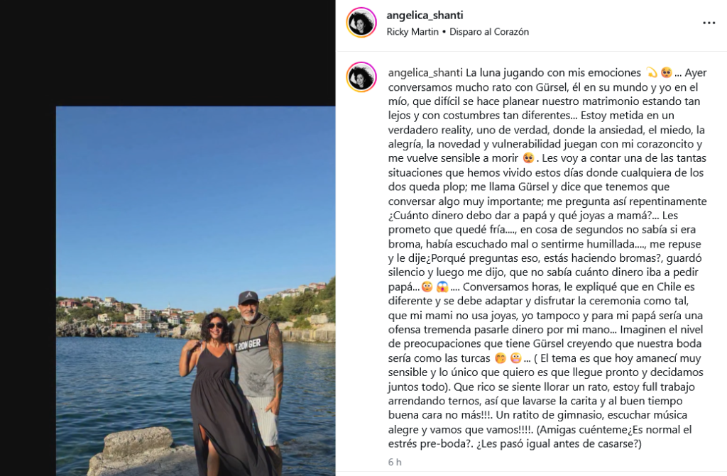 A través de su cuenta de Instagram, Angélica Sepúlveda contó una particular situación que vivió con Gürsel, su novio, en medio de los preparativos para su matrimonio.