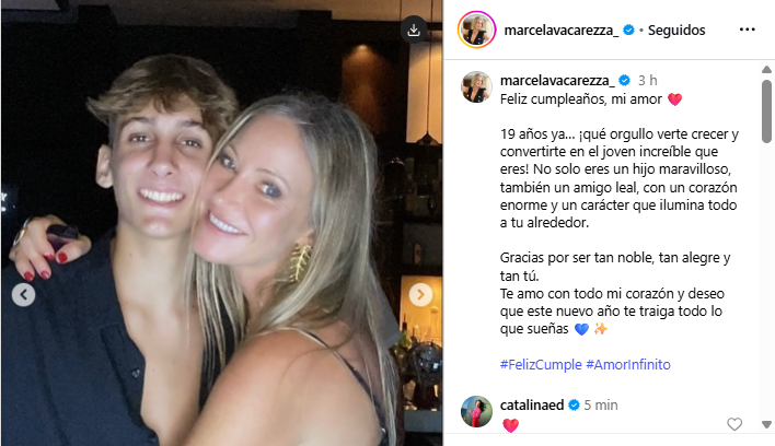 Como era de esperarse, Marcela Vacarezza también quiso plasmar un mensaje en redes sociales, compartiendo varias postales junto a su hijo.