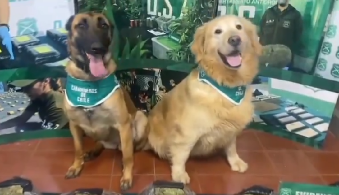 Sin embargo, no fue la magnitud del evento lo que llamó la atención en redes sociales, sino que la reacción del dúo perruno , quienes fueron grabados junto a los kilos de droga.