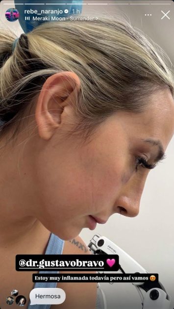 A través de una serie de historias en Instagram, Rebeca Naranjo mostró por primera vez cómo quedó tras la cirugía y se dejó ver feliz con el cambio. “Ya vi mi nariz por primera vez”, escribió, acompañando el mensaje con emojis de emoción, consignó Meganoticias.