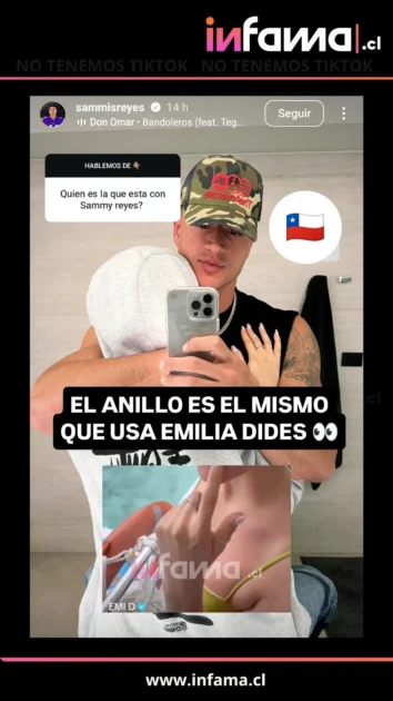 Según una foto que compartió Infama, Sammis Reyes aparece abrazado a una mujer alta, evidenciando su mano y el característico anillo que usa la modelo, algo que sus fans no dejaron pasar.