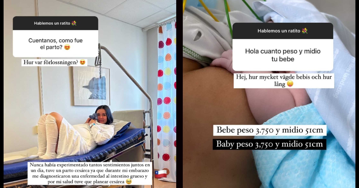 En otra historia, contó que su bebé pesó 3,750 kg y midió 51 cm al nacer, y que lo tuvo en Suecia, mismo lugar en el que ella nació.