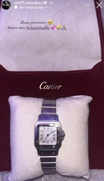 A través de sus historias de Instagram, la influencer mostró un lujoso reloj marca Cartier.
