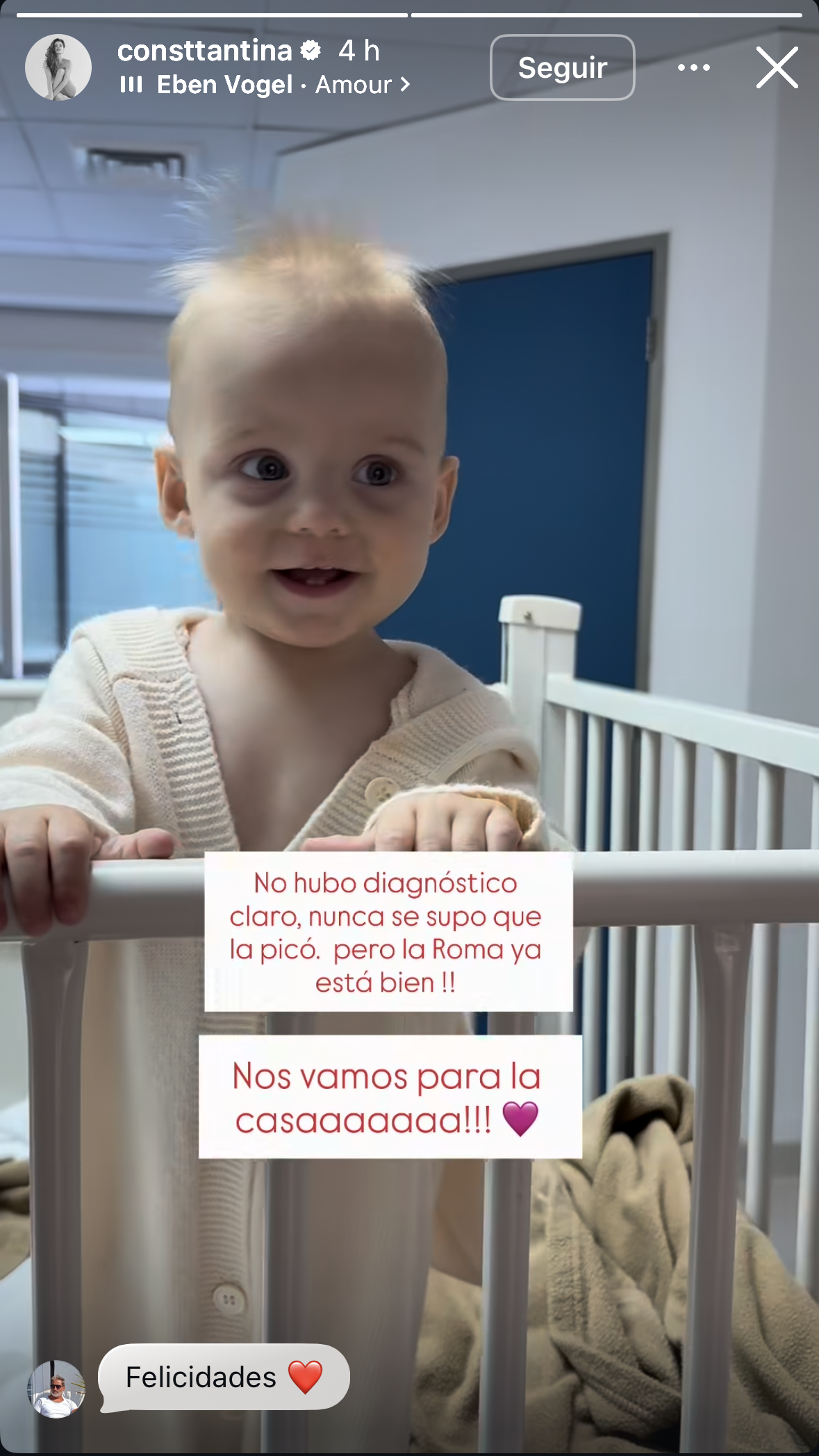 Fue a través de sus redes sociales donde la exchica reality compartió el esperado momento. En una historia de Instagram, junto a una imagen de la bebé ya recuperándose, escribió: “No hubo diagnóstico claro, nunca se supo qué la picó, pero la Roma ya está bien!!”.