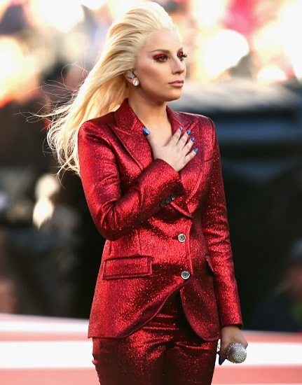 Justamente, la primera en aparecer en el evento fue Lady Gaga, quien se encargó de cantar el himno nacional de los Estados Unidos en el Estadio Levi’s de Santa Clara, California.