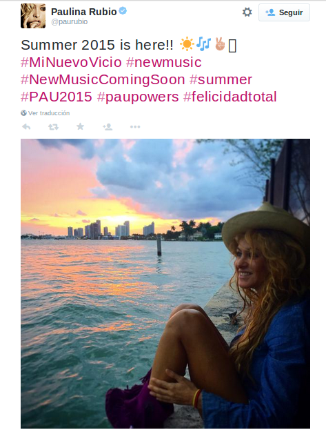 En su cuenta oficial de Twitter la artista publicó una foto personal. “El verano 2015 está aquí” junto a una serie de “hashtags” fue el mensaje que acompañó la estática.