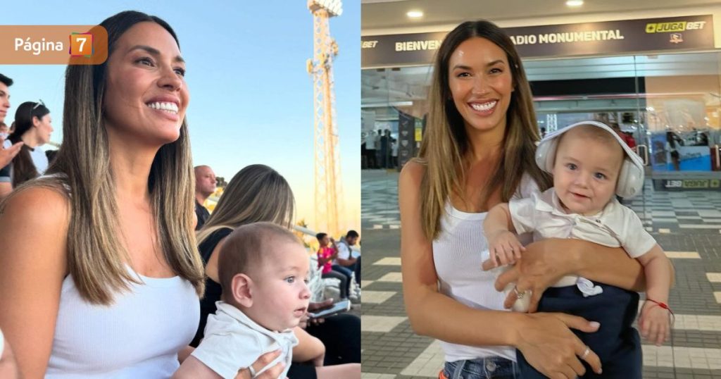 Mediante una publicación en su cuenta de Instagram, la modelo reveló que fueron por primera vez al estadio con su bebé, quien ya tiene seis meses.