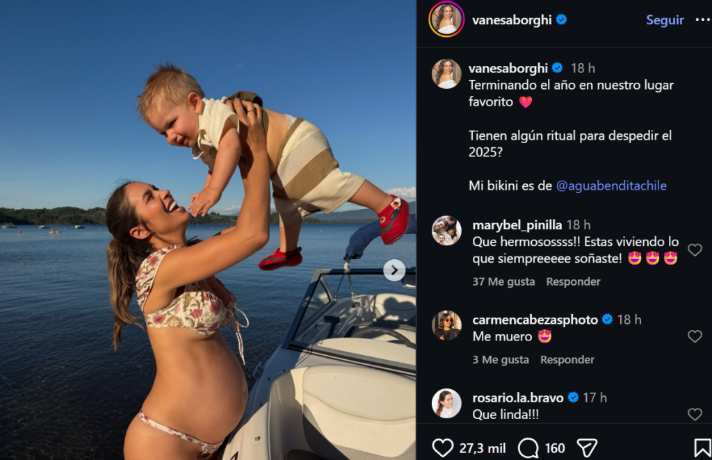 Estas últimas horas, Vanesa Borghi publicó en su cuenta de Instagram una serie de fotos luciendo su pancita, en donde se ve el avance de su tercer embarazo. “Terminando el año en nuestro lugar favorito”, escribió en la publicación.