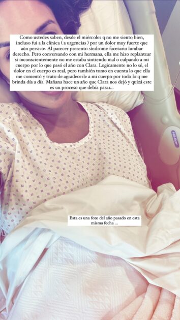 “Pero conversando con mi hermana, ella me hizo replantear si inconscientemente no me estaba sintiendo mal o culpando a mi cuerpo, por lo que nos pasó el año (pasado) con Clara”.