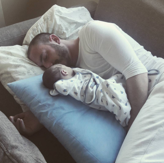 Este domingo, la ex participante de Año 0 compartió las primeras imágenes de Diego. En la primera de ellas lo muestra sobre la cama mientras duerme y en la segunda en compañía de su padre.
