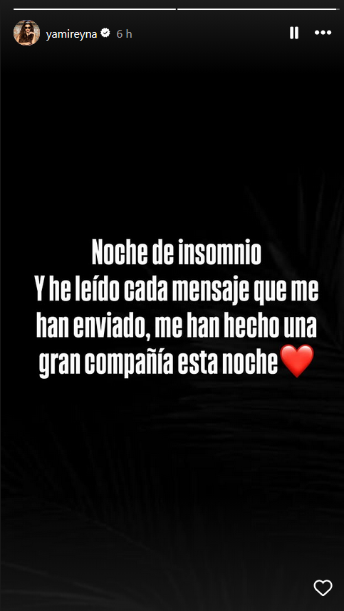 En ese contexto, la actriz argentina publicó un breve mensaje en su cuenta de Instagram. “Noche de insomnio. Y he leído cada mensaje que me han enviado, me han hecho una gran compañía esta noche”, redactó.