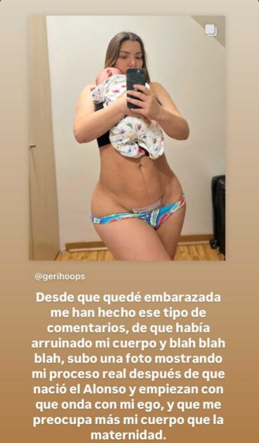 Ante ambas situaciones, Geri Hoops decidió contestar a los mensajes a través de un texto publicado en sus historias de Instagram.
