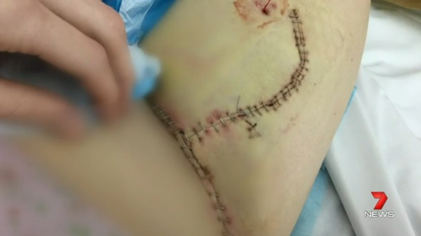 La madre australiana, Caris Strestik, conversaba y gesticulaba con su pareja, Adam, al mismo tiempo que sostenía un cuchillo en la mano, cuando pasó algo terrible: se lo clavó por error en la pierna.