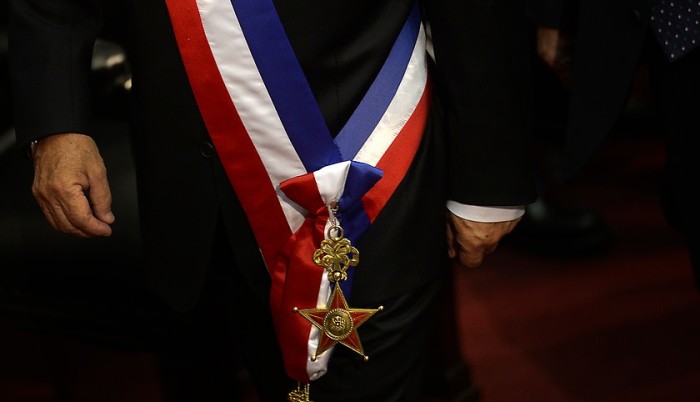 Mientras hacía ingreso al Palacio de Cerro Castillo, en Viña del Mar, el mandatario sufrió la caída de la Piocha de O’Higgins, la cual mantiene unida la banda presidencial.