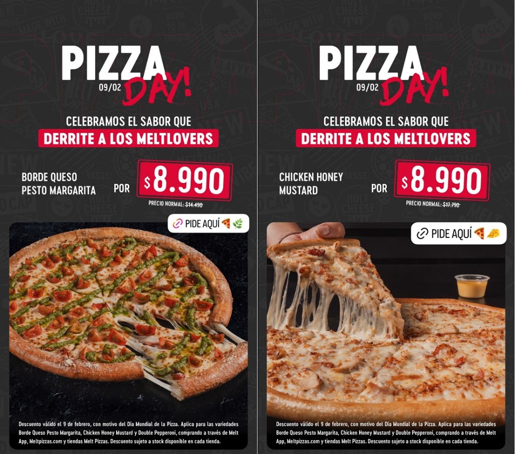 Solo por este 9 de febrero, algunas veriedades de pizza estarán a precio especial, comprando a través de Melt App, meltpizzas.com y de manera presencial en tiendas.