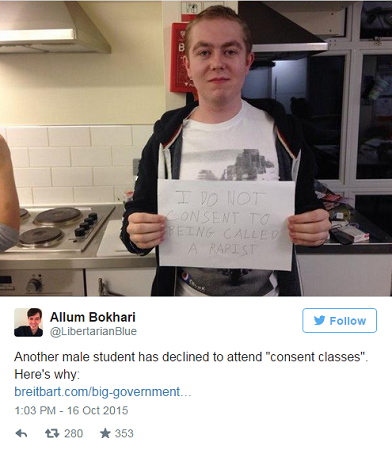 Lawlor dijo que tanto él como cualquier tipo de persona podrían presentarse a la capacitación de consentimiento y, que sabe lo suficiente sobre éste que sólo a los convertidos. “No me tienen porqué enseñar a no ser un violador”, escribió.