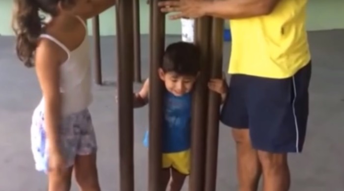 Rodrigo Gardine, padre de Arthur de 2 años, quedó perplejo cuando se dio cuenta que el pequeño niño había metido la cabeza entre dos barras de metal, mientras jugaba en un sitio de construcción en Brasil.