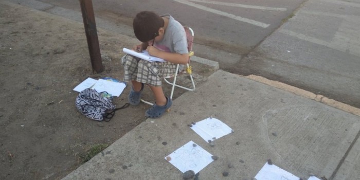 Durante este miércoles se viralizó a través de Twitter la imagen de un pequeño sentado afuera de un negocio mientras dibujaba ¿con qué fin? “comprar útiles escolares”, según reveló la usuaria que compartió la fotografía.
