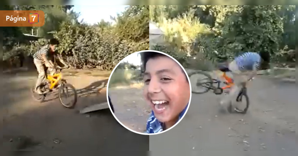 Junto a un grupo de amigos, el pequeño se registró mientras realizaba una serie de piruetas con su bicicleta.