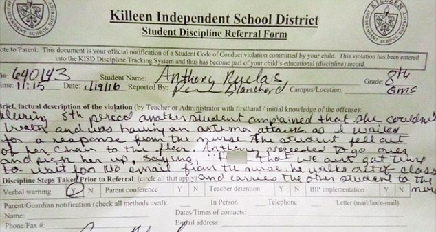 Pero el desobediente actuar del joven héroe no tuvo un buen recibimiento por parte de su profesora, quien decidió suspenderlo por un par de días. La petición terminó por indignar a la mamá de Anthoy, Mandy Cortes, quien no quiere que su hijo retome esa escuela.