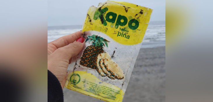 “Estábamos en Rocas de Santo Domingo a pasar a la playa. Estaba con mi hijo sacando unas piedritas y empecé a mirar la orilla, siempre lo hago. Estaba sacando unos plásticos del lugar cuando encontré este envase de Kapo”, indicó la mujer a BioBioChile.