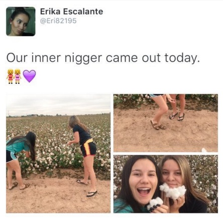 La estudiante de Lingüística Española, Erika Escalante (20), andaba paseando por un campo de algodón con una amiga, cuando tuvieron la brillante idea de tomarse varias fotos juntas y subirlas a Twitter junto a una desubicada frase.