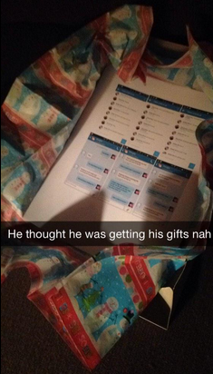 2.- “Él pensó que estaba obteniendo sus regalos, pero nah”, añade.