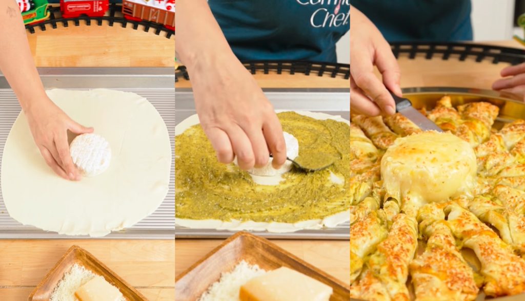 La receta es muy simple y rápida: “Compren las masas, pongan una capa de pesto sobre una de ellas y coloquen un queso Brie, o el queso que prefieran, en el centro”.