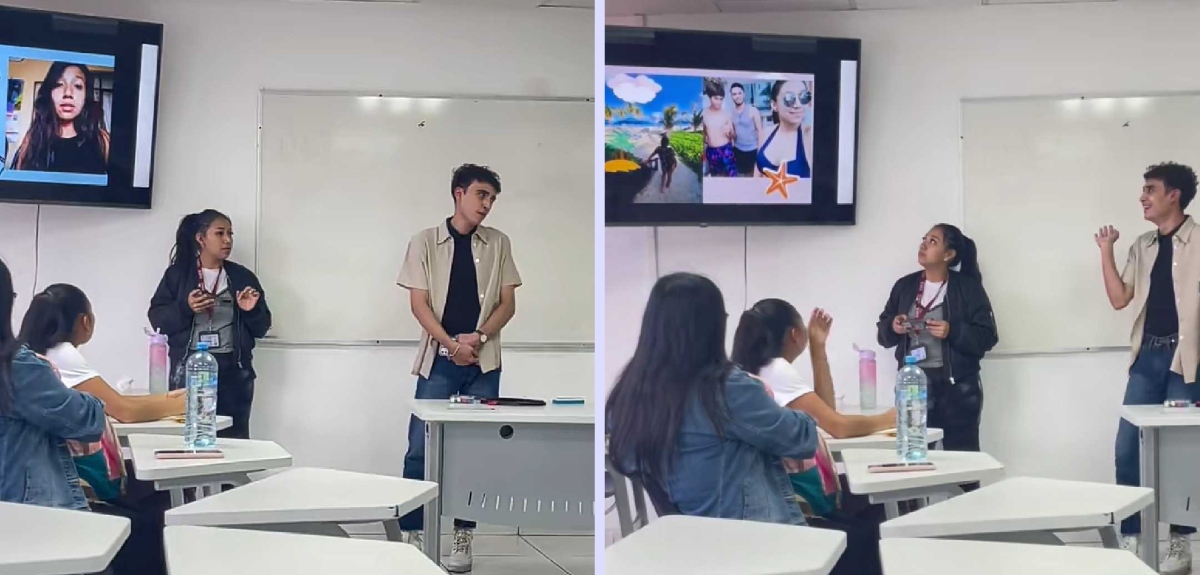 “En conclusión, mi compañera no hizo nada. No me ayudó en nada, maestra“, dijo el alumno en la exposición, mostrando una foto de la otra estudiante.