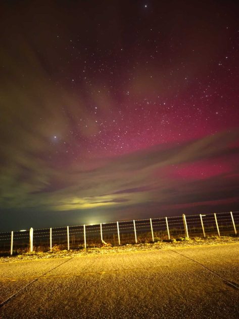 En ciudades como Porvenir y Punta Arenas anoche en la madrugada se pudo ver el cielo teñido de morado y rosado al capturar las imágenes con una exposición de 30 segundos, según reportan usuarios en redes sociales.